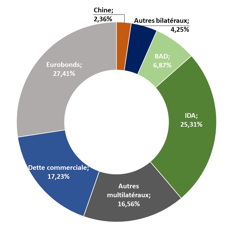 Structure du taux d'endettement public à fin mars 2025 (en % du PIB)